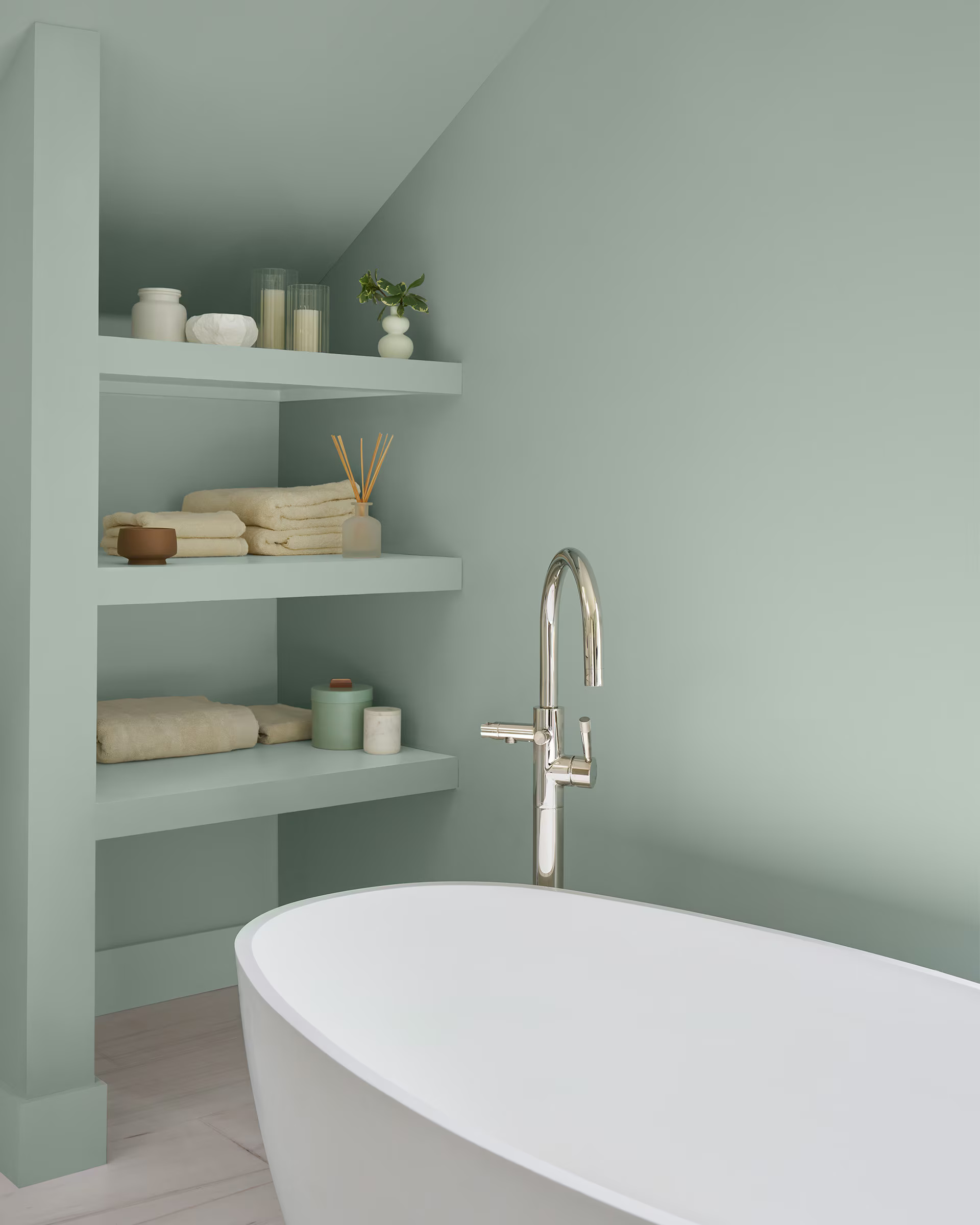 Un vert acier légèrement teinté de gris pour apporter l’apaisement d’une douce pluie.